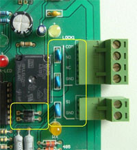 如果設(shè)置完畢后,出現(xiàn)以下異常:門(mén)開(kāi)了一半就馬上關(guān)閉了,或者 關(guān)了一半又打開(kāi)了。 這個(gè)是因?yàn)椋刂破骼^電器對(duì)電鎖保護(hù)電路對(duì)自動(dòng)門(mén)有副作用,請(qǐng)拆除或者剪斷繼電器旁邊的黑色的二極管。剪斷每個(gè)元件的一個(gè)管腳并翹起即可。(藍(lán)色的壓敏保護(hù)電路不用動(dòng))