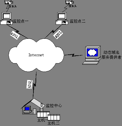 原來基于固定IP地址的數字視頻網絡監控系統,幾乎可以直接使用這種模式。當然,原來如果是預先配置遠程監控點IP地址的,現在需要改變成預先配置遠程監控點的Internet域名。編寫程序的時候只需要調用相應API函數,就可以獲得Internet域名對應的IP地址。