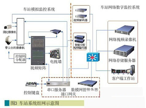 現階段地鐵交通視頻監控系統中,會牽涉大量的模擬視頻設備和數字視訊設備,典型的模擬設備有矩陣、字符迭加器、模擬攝像機、云臺、多畫面分割器等,典型數字設備有網絡視頻錄像機、存儲服務器、安防平臺服務器、安防管理服務器、接口網關、磁盤陣列、編碼器、譯碼器、數字回放終端等。該方案能夠使這些數字和模擬設備融合在一個系統中,使兩者之間能夠互聯互通、互訪互控。